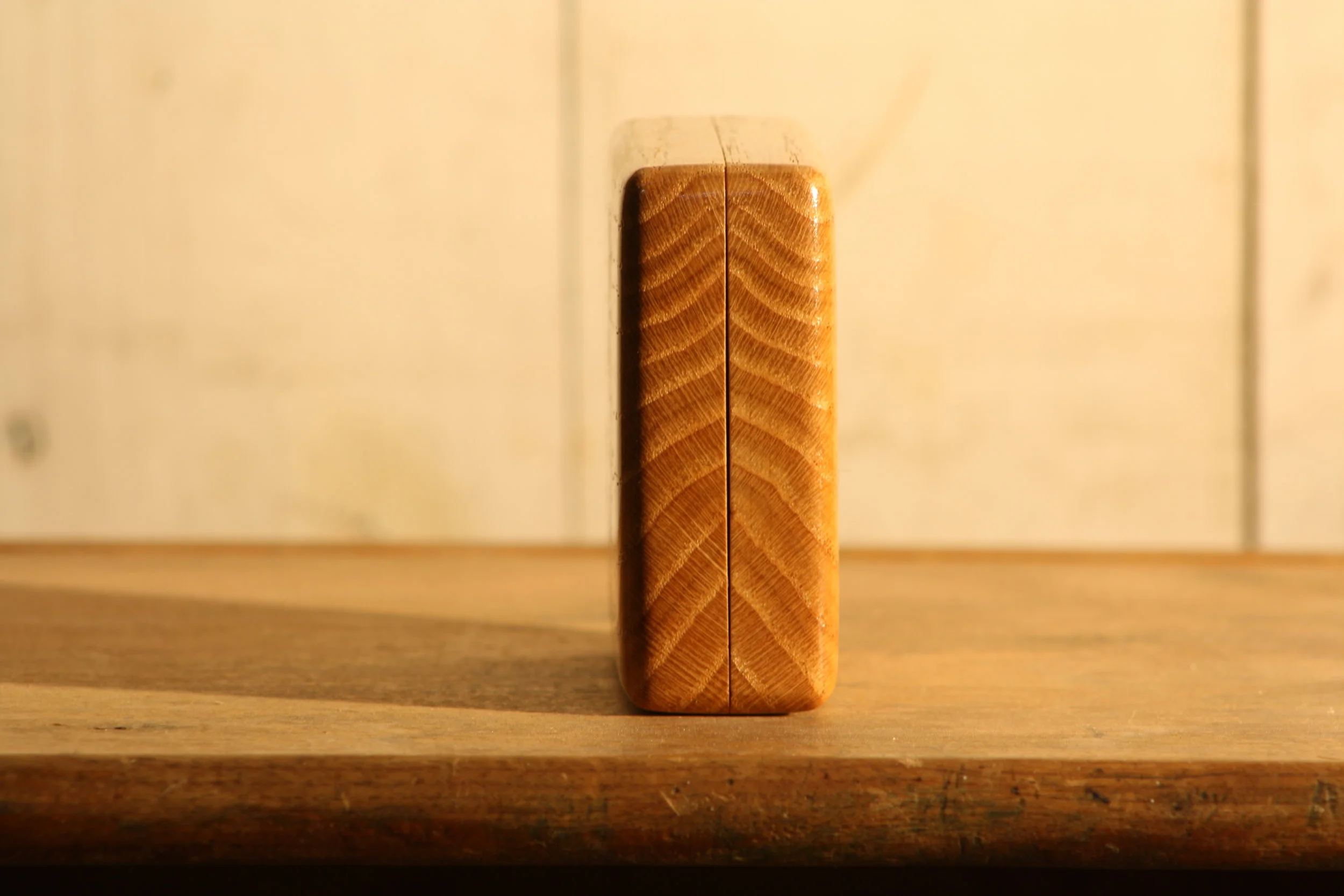 Both the left and right side of the fly boxes are milled from the same piece of hardwood which highlights the natural symmetry inherent to wood. This is most obvious in the end grain (top & bottom) of the boxes.
